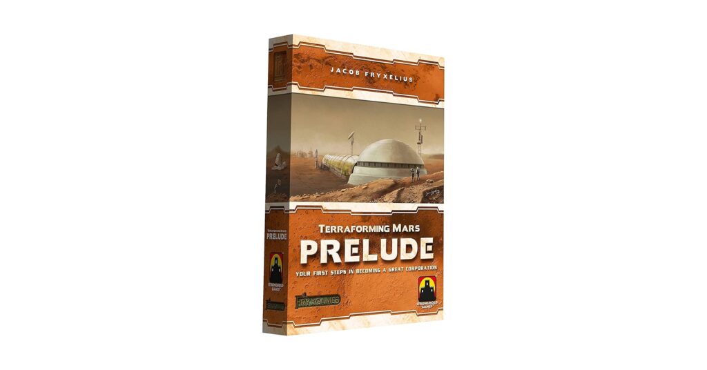 Terraforming Mars: Prelude introduces the new Prelude cards. At the start of the game, each player chooses from Prelude cards that jumpstart the terraforming process or boost their corporation’s engine. This expansion also includes 5 new corporations and 7 new project cards that thematically fit the early stages of terraforming a new planet and can be added to the game even if you’re not using the Prelude cards; and a new solo mode where your goal is to get to 63 TR before time runs out instead of completing the global parameters.