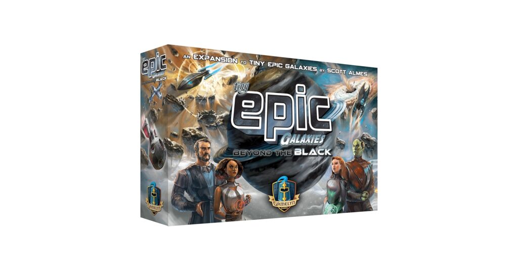 Additionally, Tiny Epic Galaxies: Beyond the Black introduces a press-your-luck exploration option for players. This allows players to venture beyond the planets and into deep space where they might encounter dwarf planets worth victory points, or rare materials that yield resources… or they may encounter cosmic threats like solar storms, black holes, and even supernovas. Either way, exploring deep space provides a player with exploration badges. These badges are tallied up at the end of the game and players are rewarded bonus victory points based on who has the most of a certain badge type. They are four types of badges to collect.